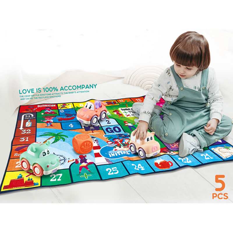 زمین بازی سفرهای کد 817-11 یک اسباببازی 5 تکه شامل یک سفره بزرگ و رنگارنگ مشابه بازی مار و پله، 3 عدد ماشین جغجغهای از جنس ABS نرم، بهداشتی و قابل شستشو به طول 9 سانتیمتر و یک عدد تاس میباشد. با این ست بازی جذاب، کودک شما وارد دنیایی از سرعت، خلاقیت و سرگرمی شده و تجربهای متفاوت از بازیهای فکری و حرکتی رو پیش رو خواهد داشت.